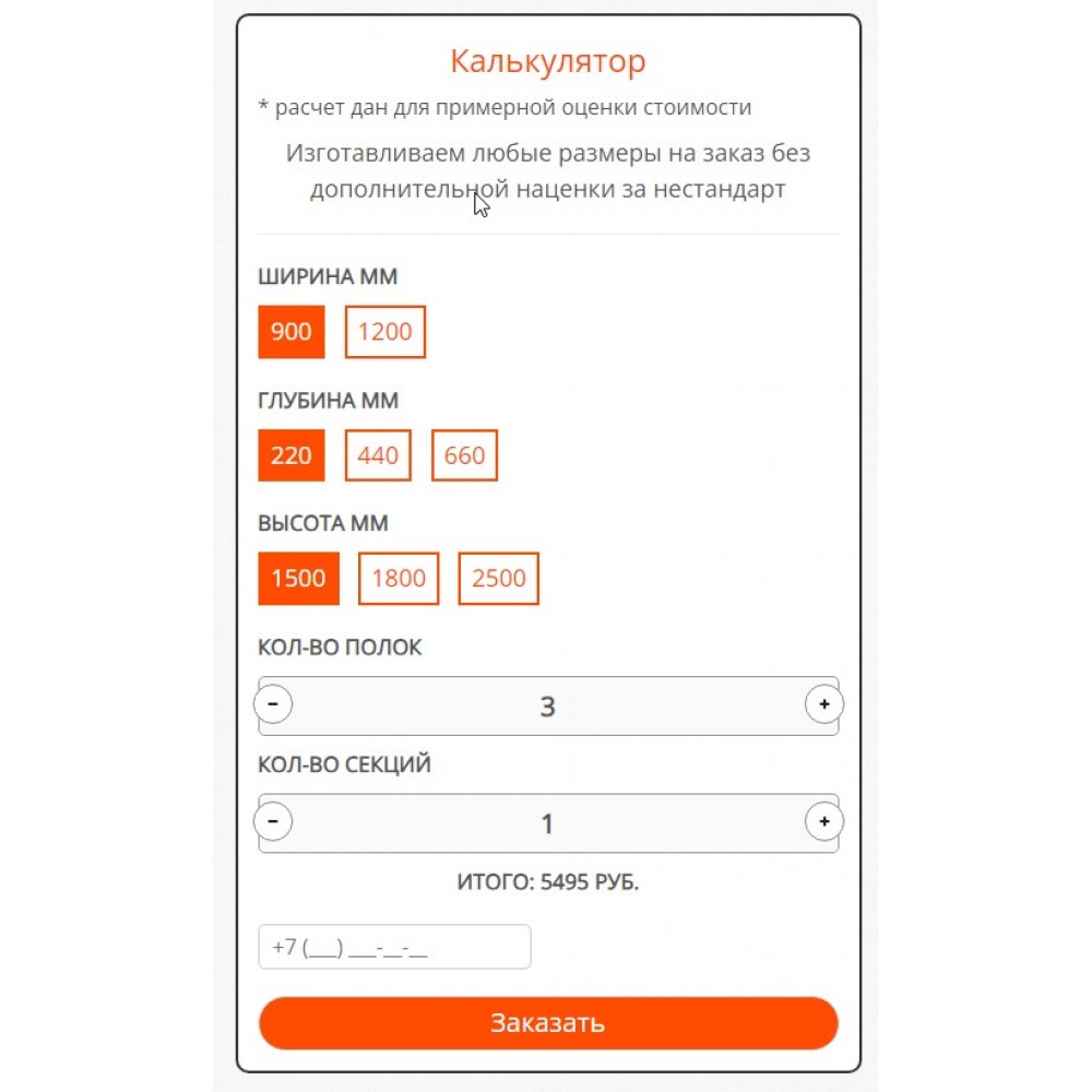 Модуль "Калькулятор стеллажей" от веб-студии Максвебсайт г. Красноуфимск
