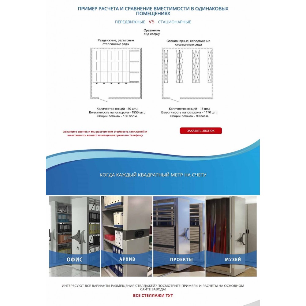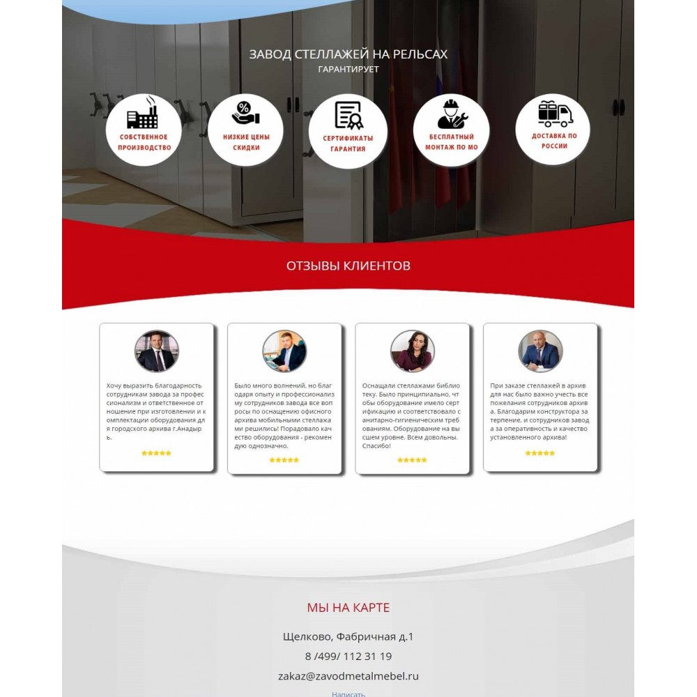 Рекламная страница (лендинг) завода мобильных стеллажей от веб-студии Максвебсайт г. Красноуфимск