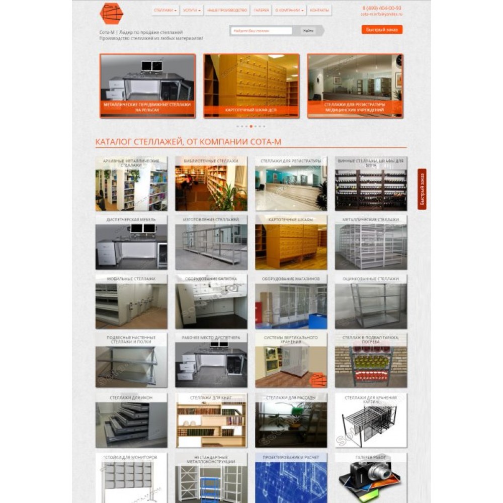 Сайт каталог, по продаже металлических стеллажей, от веб-студии Максвебсайт г. Красноуфимск