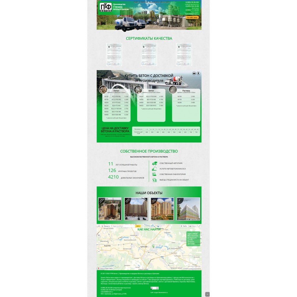 Сайт одностраничник завода по производству бетона от веб-студии Максвебсайт г. Красноуфимск
